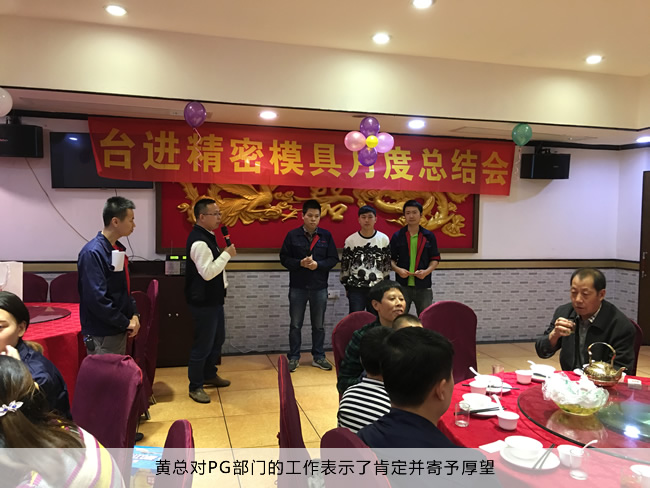 2017年11月台进精密模具月度总结和员工生日会到此就圆满结束了,希望我们每个人谨记黄总的教导,吸取教训,把握现在,展望未来,在往后的工作中做出更多更大的贡献!