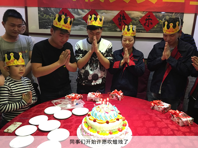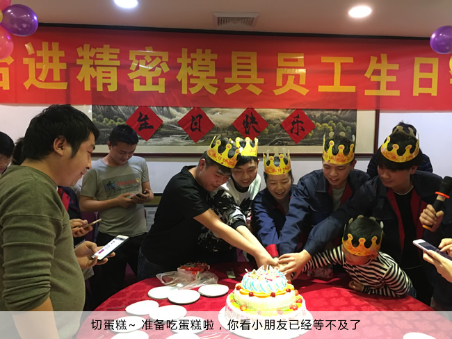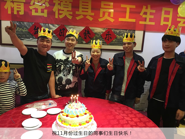大会的最后阶段来到了每月都会举行的员工生日会。大家酒足饭饱之际,生日蛋糕已经摆上了桌面,等待着寿星们一起许愿切蛋糕了,祝愿11月份过生日的5位小伙伴,同事也祝台进的同事们工作顺利,生活愉快,祝愿台进精密模具越做越好,一帆风顺。