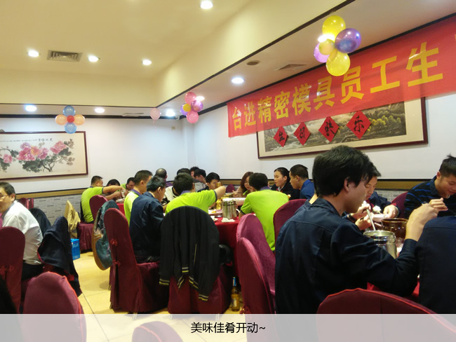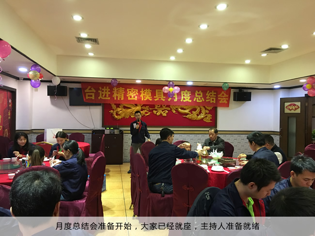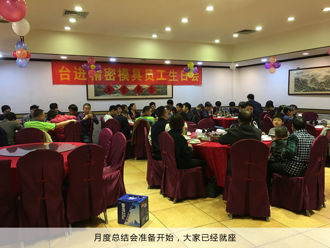 2017年12月5日,东莞台进精密全厂于东莞长安湘妃阁酒楼举办“台进精密模具月度总结会和员工生日会”,总结11月份公司各部门做出的成绩以及不足之处,为12月份以及往后的工作指明方向,同时为11月份生日的同事举办生日会。