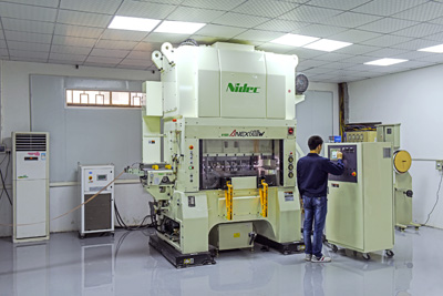 2.高速精密冲床导套(导板、导柱、导正销、导板模、导料板):固定在上模座内,与固定在下模座的导柱配合使用 ①导板:起到卸料作用,导板上带有与凸模精密滑配内孔的板状零件,使凸模与凹模的能相互对准 ②导柱:多数固定在下模座,配合上模座的导套为上下模的运动提供精密的导向圆柱形零件 ③导正销:伸入材料孔中导正其在凹模内位置的销形零件。 ④导板模:靠导板与凸模的精确配合,由导板准确地引导凸模进入(接触)凹模刃口,进行冲裁工作。 ⑥导料板:引导条料或带料进入模具(凹模)的板状导向零件。 3.高速精密冲床冲模:分为上下两部分,其中凸模以外形为工作表面的零件。凹模即以内形为工作表面的零件。 4.压料板:冲模中用于压住冲压材料或工序件以控制材料流动的零件 5.高速精密冲床固定板:固定卸料板是固定在冲模上位置不动的卸料板,将材料或工(序)件从凸模上卸脱的固定式或活动式板形零件。卸料板是有时与导料板做成一体,兼起导料作用,仍称卸料板。 高速精密冲床的作业是经过机械内部多个系统来相互配合完成,每个系统的作业都关系到冲模的精度以及速度,所以在使用过程中,为了保持冲床的精度以及生产效率,对于高速精密冲床的保养维修也是至关重要的。 东莞台进精密模具拥有日本KYORI高速精密60T冲床,工作台面尺寸:1350*600mm,主要用于调试IC引线框架模具与小批量试产,其中SOP028引线框架模具概况:引线框架材料为C194铜料,厚度0.127mm的卷料,由送料机、校正机、导料机构、高速精密冲床、精密连续冲压模具,卷料收料装置等组成的引线框架高速精密冲压自动化生产线。 冲压工序包含打字、冲压麻状点,冲定位孔与分步冲内引线、分步冲外引线、载片分离、精压内引线,内、外引线校平、校横弯、校步距、精整等多工位的连续冲压,该模具冲次速度为450~500次/分钟。 东莞台进精密模具设计与制作的IC引线框架模具集微成型、微薄化、多脚化、高密度、小间距、多样化等总体水平及经验已达国内同类产品模具制造厂家前沿。 |