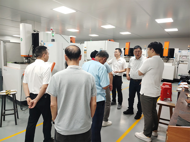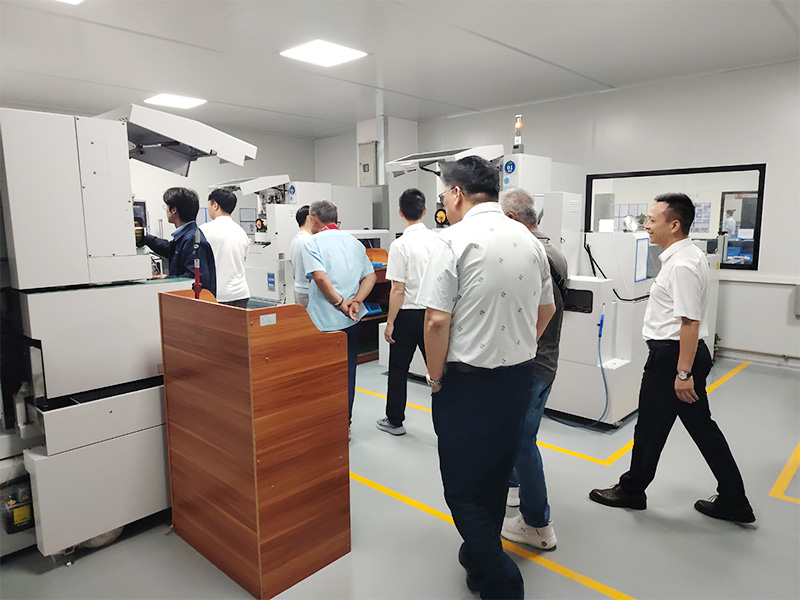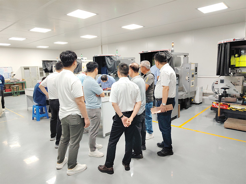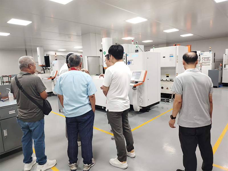 访问期间,客户们深入参观了我们的核心制造车间。我司团队详细介绍了从设计到制造的全流程质量控制体系。客户们对车间内的高精度电火花加工(EDM)设备、先进的慢走丝线切割(WEDM)技术以及专为半导体领域打造的精密模具生产线表现出了浓厚的兴趣,并就技术细节与我们的工程师进行了热烈讨论。